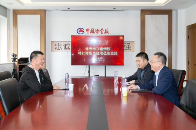 4月2日,連雲港興鑫鋼鐵有限公司副總經理林仁秀到訪中國冶金報社,與中國鋼鐵工業協會副秘書長,中國冶金報社黨委書記、社長範鐵軍進行座談交流,就目前行業發展趨勢,不同類型鋼鐵企業發展戰略和定位、未來出路進行了深入交流。