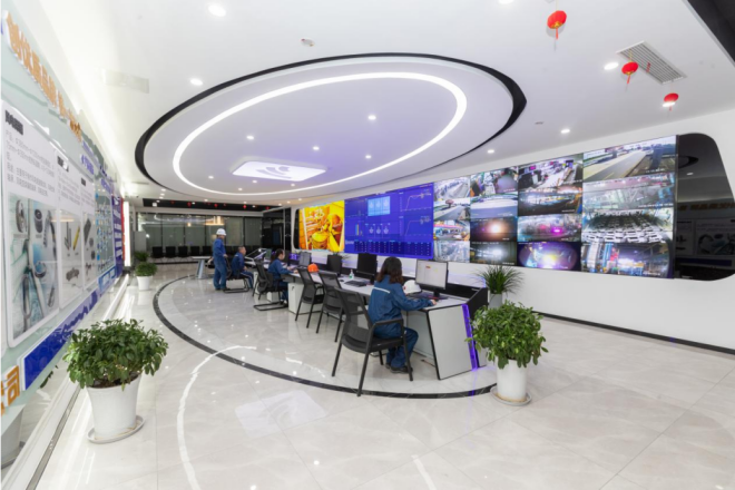 來到工廠中控室,《中國冶金報》記者隻見大屏駕駛艙係統將項目中重點數據以儀表盤、曲線圖、柱狀圖等可視化方式動態展示,方便工作人員實時觀察設備運行狀態、環保檢測等各種參數的變化,項目狀況一目了然。