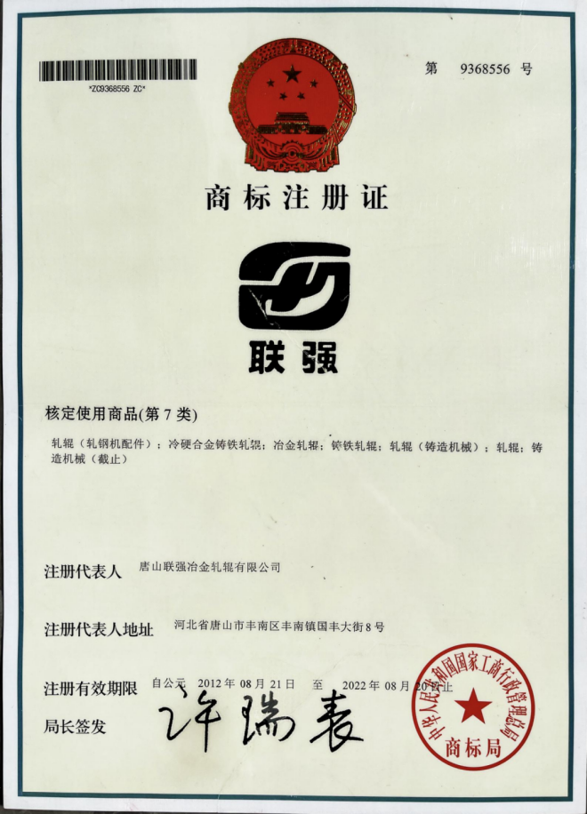 朝陽聯強軋輥公司今後的工作重點仍然是品牌建設,其次是進行品牌維權。據孫建勳回顧:憑(ping)借(jie)著(zhe)幾(ji)代(dai)聯(lian)強(qiang)人(ren)的(de)辛(xin)勤(qin)耕(geng)耘(yun),聯(lian)強(qiang)軋(zha)輥(gun)擁(yong)有(you)了(le)行(xing)業(ye)中(zhong)最(zui)為(wei)成(cheng)熟(shu)的(de)離(li)心(xin)軋(zha)輥(gun)生(sheng)產(chan)技(ji)術(shu)。在(zai)由(you)聯(lian)強(qiang)首(shou)創(chuang)的(de)離(li)心(xin)複(fu)合(he)高(gao)速(su)鋼(gang)軋(zha)輥(gun)專(zhuan)利(li)技(ji)術(shu)等(deng)多(duo)項(xiang)先(xian)進(jin)技(ji)術(shu)發(fa)明(ming)專(zhuan)利(li)與(yu)實(shi)用(yong)新(xin)型(xing)專(zhuan)利(li)技(ji)術(shu)加(jia)持(chi)下(xia),聯(lian)強(qiang)連(lian)續(xu)30年保持中國中小型離心軋輥市場占有率第一;連續25年(nian)保(bao)持(chi)中(zhong)國(guo)中(zhong)小(xiao)型(xing)離(li)心(xin)軋(zha)輥(gun)出(chu)口(kou)量(liang)第(di)一(yi)。聯(lian)強(qiang)品(pin)牌(pai)在(zai)軋(zha)輥(gun)行(xing)業(ye)中(zhong)是(shi)享(xiang)有(you)盛(sheng)譽(yu)的(de),是(shi)行(xing)業(ye)中(zhong)的(de)名(ming)牌(pai)產(chan)品(pin)。在(zai)當(dang)前(qian)市(shi)場(chang)上(shang),隻(zhi)有(you)兩(liang)家(jia)存(cun)續(xu)公(gong)司(si)屬(shu)於(yu)“聯強軋輥” 品牌企業:一家是原唐山聯強冶金軋輥有限公司,另一家是朝陽聯強軋輥有限公司。