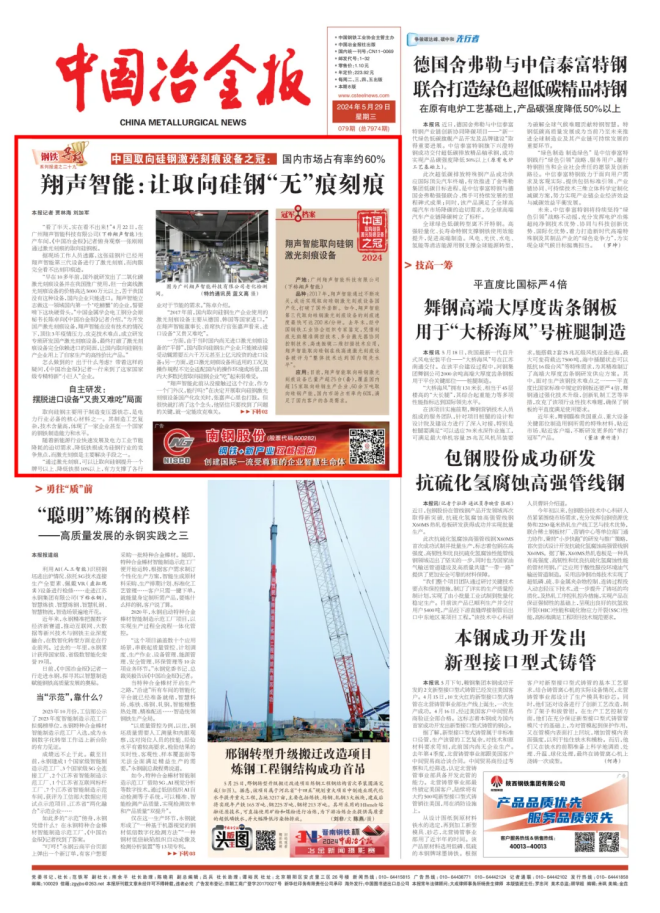 【中國取向矽鋼激光刻痕設備之冠】 國內市場占有率約60% 翔聲智能:讓取向矽鋼“無”痕刻痕