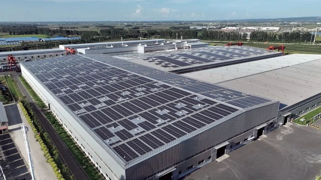 圖為建龍阿鋼屋頂光伏發電項目一角。