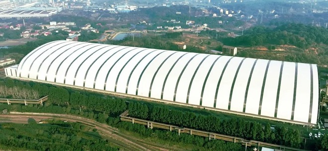 圖為衡鋼煉鐵原料場封閉大棚。