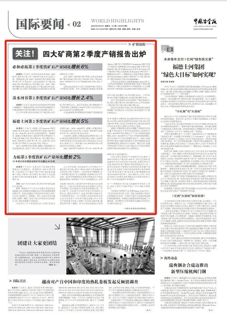 四大礦商第2季度產銷報告出爐