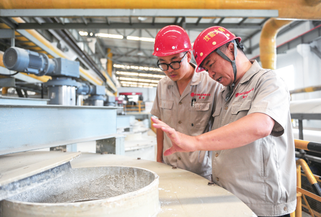 張文斌大師與團隊成員進行技術研討。(包鋼 供圖)