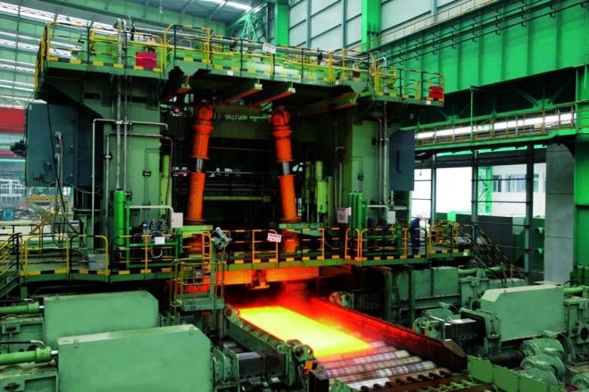 河he鋼gang集ji團tuan舞wu鋼gang公gong司si擁yong有you兩liang條tiao技ji術shu先xian進jin的de雙shuang機ji架jia寬kuan厚hou鋼gang板ban生sheng產chan線xian,配pei套tao有you國guo內nei寬kuan厚hou板ban行xing業ye優you勢shi明ming顯xian的de鋼gang錠ding模mo鑄zhu線xian及ji鋼gang板ban熱re處chu理li設she施shi,具ju有you雄xiong厚hou的de研yan發fa製zhi造zao實shi力li。圖tu為wei舞wu鋼gang寬kuan厚hou板ban生sheng產chan車che間jian。