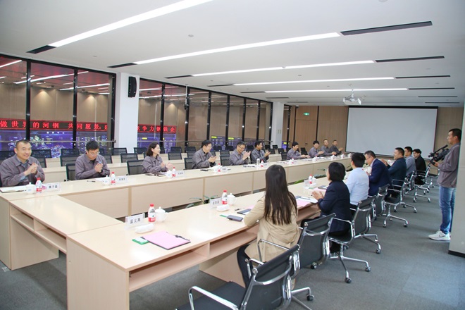 河鋼唐鋼總經理助理、技術中心常務副主任鄺霜,宣傳部部長任豔琳,辦公室主任高子磊,能源環保部部長吳海東;中國冶金報社副總編兼新媒體中心主任呂兵,經濟發展中心副主任、鋼鐵部主任劉加軍,谘詢研究中心主任蘇亞紅,鋼鐵部副主任王誌,記者滕珊,特約通訊員藍義高等參加了座談交流。