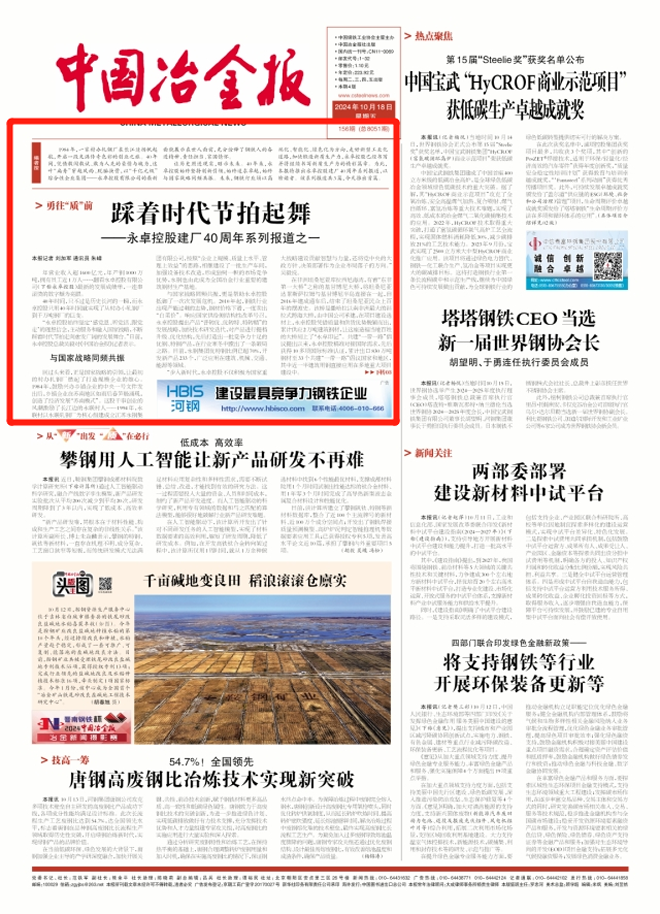 【1】 凡本網注明"來源:中國冶金報—中國鋼鐵新聞網"的所有作品,版權均屬於中國鋼鐵新聞網。媒體轉載、摘編本網所刊 作品時,需經書麵授權。轉載時需注明來源於《中國冶金報—中國鋼鐵新聞網》及作者姓名。違反上述聲明者,本網將追究其相關法律責任。