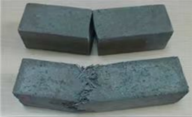 爐(lu)腹(fu)爐(lu)腰(yao)預(yu)掛(gua)渣(zha)皮(pi)技(ji)術(shu)是(shi)將(jiang)金(jin)屬(shu)陶(tao)瓷(ci)材(cai)料(liao)澆(jiao)注(zhu)於(yu)冷(leng)卻(que)壁(bi)表(biao)麵(mian),在(zai)冷(leng)卻(que)壁(bi)表(biao)麵(mian)形(xing)成(cheng)一(yi)層(ceng)永(yong)久(jiu)性(xing)的(de)人(ren)造(zao)渣(zha)皮(pi)保(bao)護(hu)層(ceng)。該(gai)材(cai)料(liao)將(jiang)金(jin)屬(shu)纖(xian)維(wei)引(yin)入(ru)到(dao)非(fei)金(jin)屬(shu)澆(jiao)注(zhu)料(liao)中(zhong),將(jiang)兩(liang)者(zhe)的(de)優(you)點(dian)相(xiang)結(jie)合(he),提(ti)高(gao)材(cai)料(liao)的(de)抗(kang)折(zhe)抗(kang)壓(ya)等(deng)物(wu)理(li)指(zhi)標(biao),提(ti)高(gao)材(cai)料(liao)的(de)導(dao)熱(re)能(neng)力(li),延(yan)長(chang)爐(lu)腹(fu)、爐腰區域耐材的使用壽命。在350℃條件下,導熱係數20W/(K·m)左右;鋼纖維含量達到40%左右,不是普通的高鋼纖維澆注料(10%以下),其200℃以下抗折強度可達到35MPa~40MPa,在實驗室常規抗折檢測設備都無法將其壓彎,而折後的材料也不“折而不斷”。下圖為預掛渣皮材料的物理檢測圖。