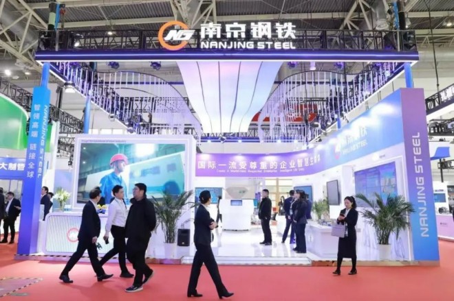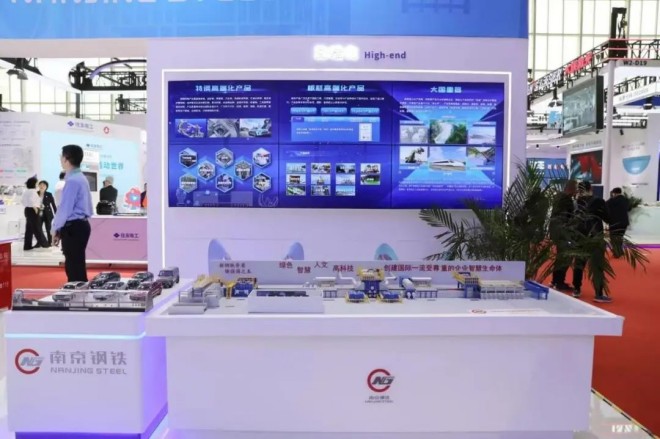 南京鋼鐵集團展位設計以“智領高端·鏈接全球”為主題,共分為包括高端化、智能化、綠色化、全球化和融合化的“五化”展區,分別展示了南鋼在高強度、高韌性、高疲勞等高性能特殊鋼領域的研發實力與產品矩陣,數字化轉型成果,在環保提升、超低排放改造和生態保護方麵的巨大投入與顯著成效,國際化戰略成果,以及在鋼鐵與新產業相互賦能的“雙主業”發展格局下的新探索。