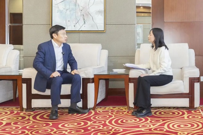 圖為毛新平院士接受《中國冶金報》記者專訪(特約通訊員 藍義高 攝影)