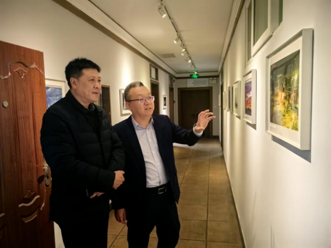 圖為範鐵軍陪同馮鶴林參觀中國冶金報社 (陳曉莉 攝)
