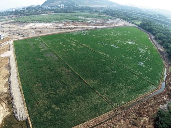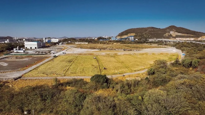 秉承綠色發展的理念,南山礦創新治理模式,利用和尚橋采場多餘的廢土進行回填、土壤改良、凹山人工湖循環利用等,修複廢棄礦坑,喚醒沉睡土地,消除地質災害隱患,先期完成60畝水稻田治理。今年7月5日,南山礦采用無人機開始播撒稻種。