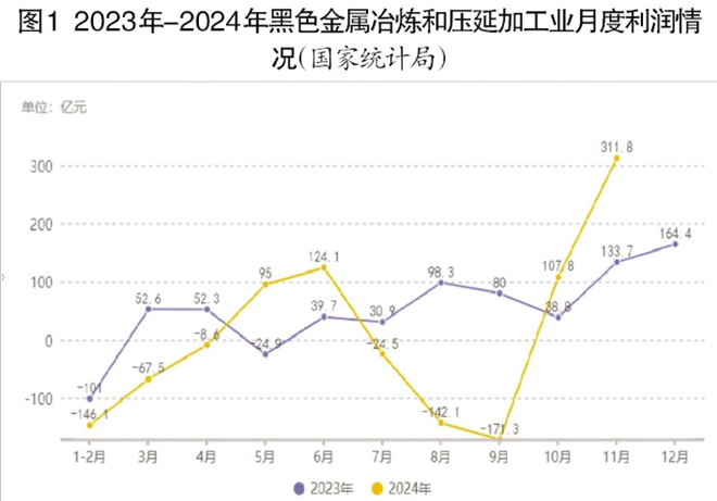 2025年,我國鋼鐵行業盈利能力預計有所改善。鋼鐵行業從2024年10月份開始扭虧為盈,出現明顯複蘇跡象(詳見圖1)。整體上,2025年全球市場需求將好於2024年。