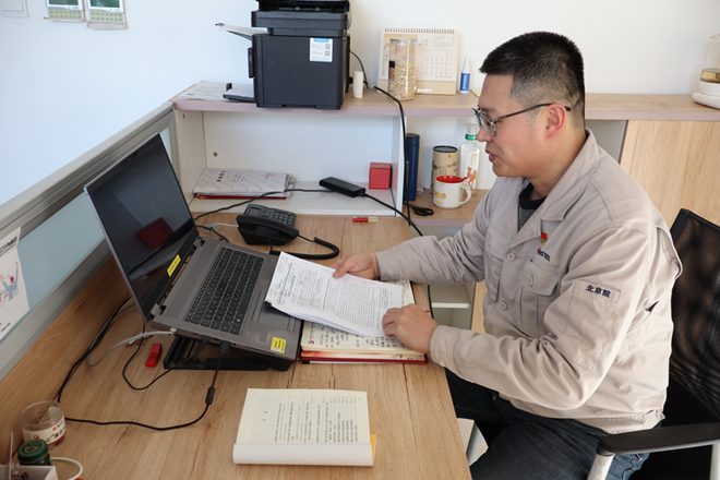 圖為劉旭明向《中國冶金報》記者展示圍繞抑製力近恒量控製技術發表的論文