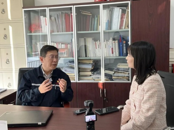 圖為李剛接受《中國冶金報》記者采訪