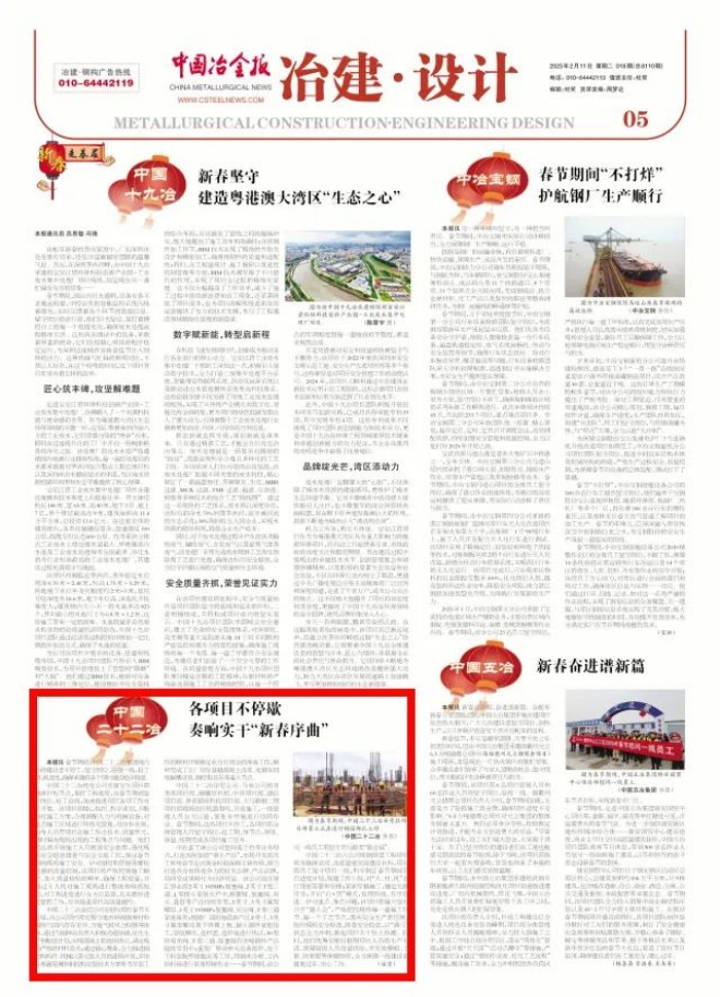 春節期間,中國二十二冶集團境內外的建設者不停工,堅守崗位、奮戰一線,搶工期、抓進度,確保承建的各個項目建設穩步推進。