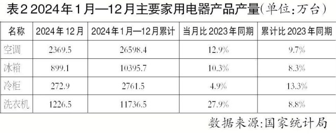 應用領域二:家用電器。2024年全國空調產量為26598.4萬台,同比增長9.7%;全國冰箱產量為10395.7萬台、同比增長8.3%,冷櫃產量為2761.5萬台、同比增長13.3%;全國洗衣機產量為11736.5萬台,同比增長8.8%,整個行業生產運行良好,均為上升趨勢。