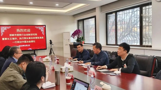 邯鄲市鋼鐵行業創新研究院董事長王瑞華、執行院長兼總經理張海良一行到訪中國冶金報社
