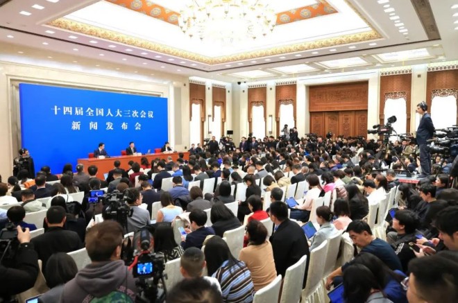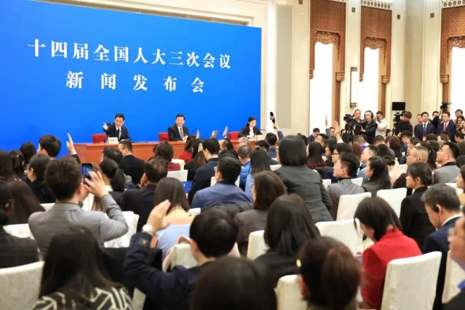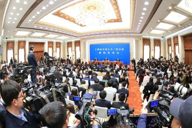 3月4日12時,十四屆全國人大三次會議在北京人民大會堂舉行新聞發布會,大會發言人婁勤儉回答中外記者提問