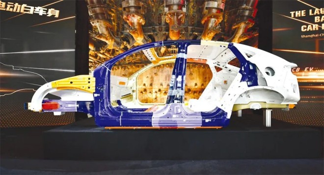 圖為寶鋼股份超輕型、高安全、純電動白車身。(張勇 攝)
