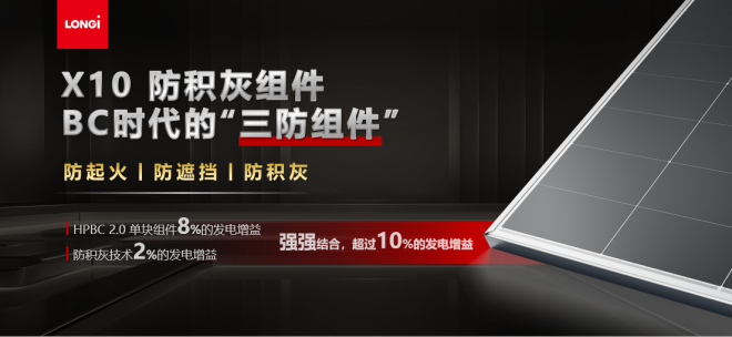 Hi-MO X10防積灰組件:防起火、防遮擋、防積灰,BC三防光伏組件“強上加強”