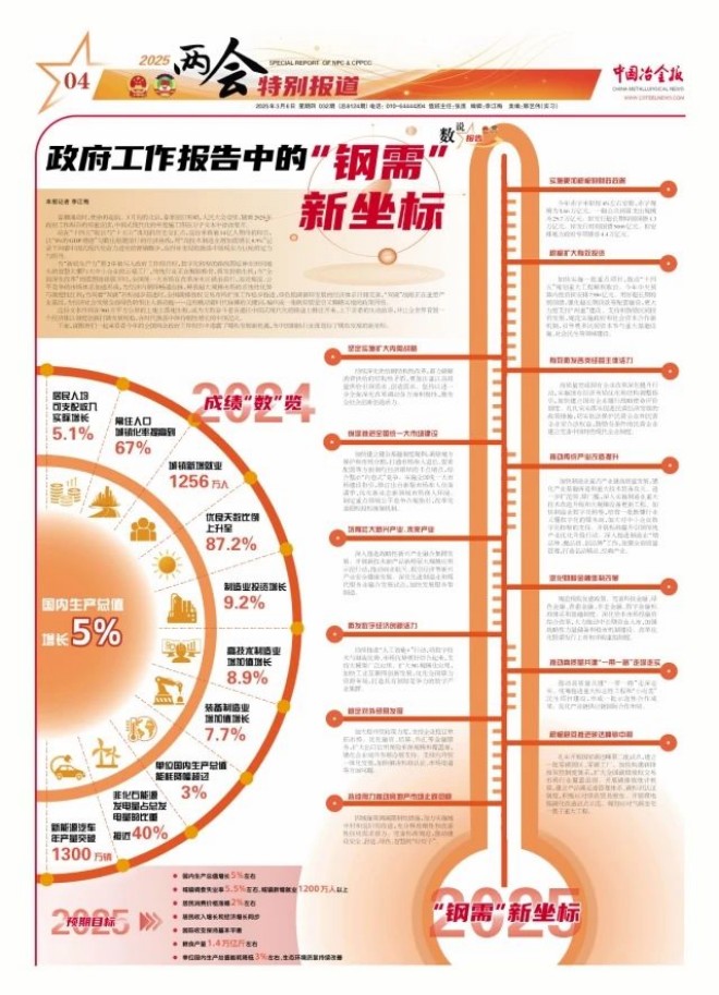 這份文本終將在960萬平方公裏的土地上落地生根,成為無數奮鬥者在通往中國式現代化的路途上繼往開來、上shang下xia求qiu索suo的de生sheng動dong故gu事shi,並bing讓rang全quan世shi界jie看kan到dao一yi個ge經jing濟ji體ti以yi製zhi度du創chuang新xin打da破po發fa展zhan桎zhi梏gu,在zai時shi代dai激ji蕩dang中zhong保bao持chi韌ren性xing增zeng長chang的de中zhong國guo範fan式shi。下xia麵mian,請qing跟gen我wo們men一yi起qi來lai看kan看kan今jin年nian的de全quan國guo兩liang會hui政zheng府fu工gong作zuo報bao告gao中zhong透tou露lu了le哪na些xie發fa展zhan新xin機ji遇yu,為wei中zhong國guo鋼gang鐵tie行xing業ye謀mou劃hua好hao了le哪na些xie發fa展zhan的de新xin坐zuo標biao。