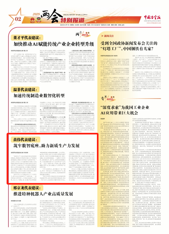 兩會建言 | 苗偉代表建議:築牢數智底座,助力新質生產力發展