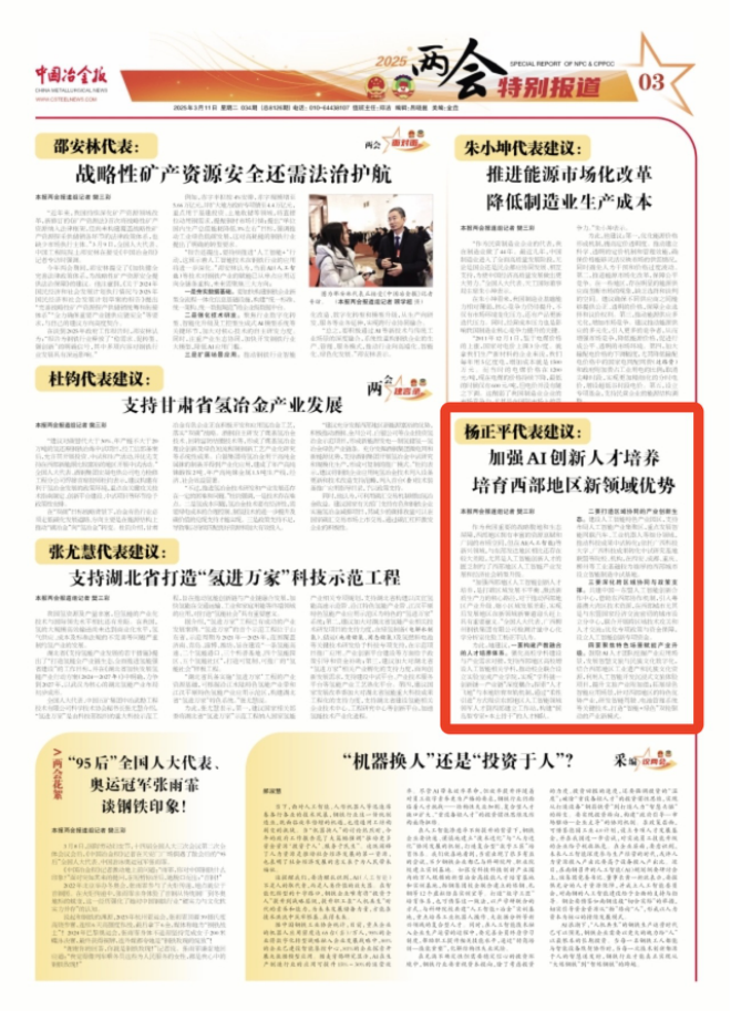 兩會建言 | 楊正平代表建議:加強AI創新人才培養 培育西部地區新領域優勢