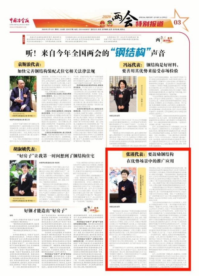 兩會麵對麵 | 張謹代表:要鼓勵鋼結構在優勢場景中的推廣應用