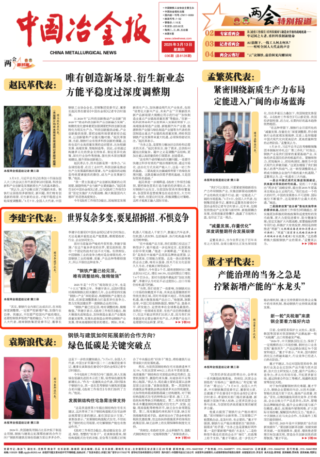 2025年是“十四五”規劃收官之年,也是“十五五”蓄勢之年。李建宇表示,這段時期是對湖南鋼鐵比較關鍵的幾年,企業將堅持實施“鋼鐵+產業”雙輪驅動,構建鋼鐵產業鏈生態係統,在深度調整期著力打造差異化競爭力,努力實現創建世界一流鋼鐵企業的目標。