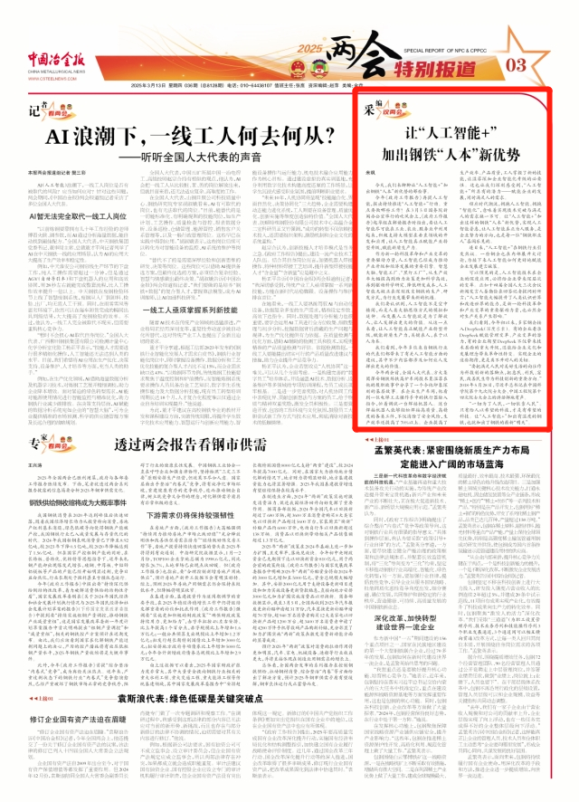采編議兩會 | 讓“人工智能+”加出鋼鐵“人本”新優勢