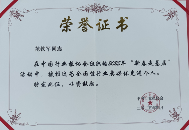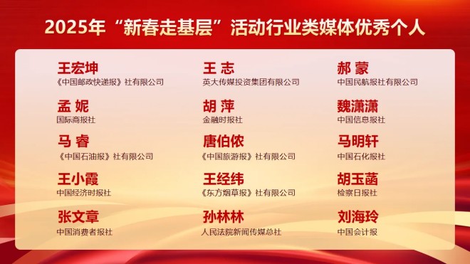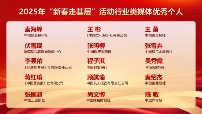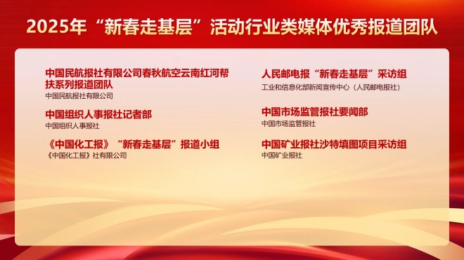 4月27日,中國行業報協會發布了行業類媒體2025年“新春走基層”活動優秀作品和優秀報道團隊、個人名單。對30個行業類媒體優秀報道團隊、60名行業類媒體優秀個人、60件行業類媒體優秀作品進行推介。