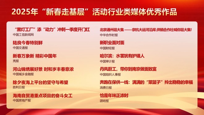 縱觀2025年行業類媒體“新春走基層”活動,突出特點是站位高、謀劃早、立意新、采訪實、覆蓋廣、影響大。協會將認真總結經驗做法、提煉特色亮點,形成可參考可複製的工作模式,以此指導日常“走基層”采訪活動。