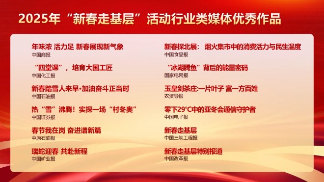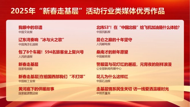 三是堅持邊推進邊展示,為全國性行業類媒體提供了動態化可參考可借鑒的鮮活樣本。協會第一時間在官網官微開辟了“新春走基層典型報道”專欄,優選行業類媒體角度新、有見地、有思想、有影響的優秀稿件依次發布。各行業類媒體也紛紛動員、周密部署,抽調精幹力量參加2025年“新春走基層”活動。許多行業類媒體人深入基層、奔赴一線,創作了大量優秀新聞作品,刊播稿件18600餘篇(條),網站、客戶端及新媒體等平台作品總閱讀量超36.5億次。
