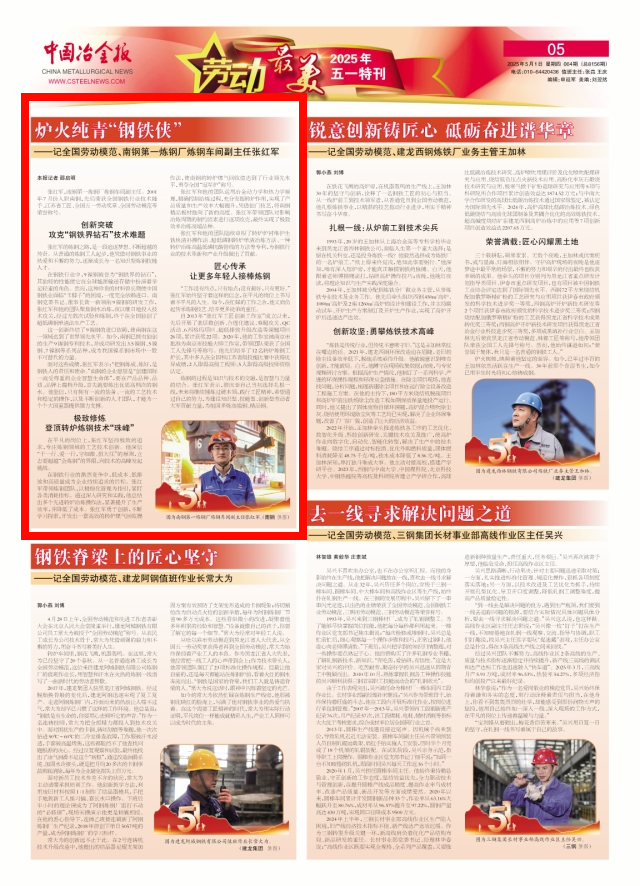 爐火純青“鋼鐵俠”——記全國勞動模範、南鋼第一煉鋼廠煉鋼車間副主任張紅軍