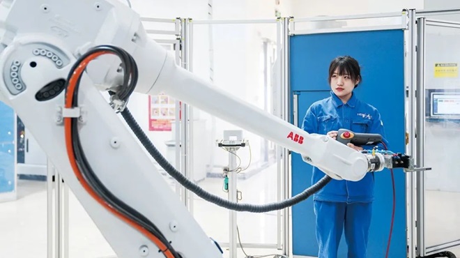 河鋼集團石鋼公司推進實施全流程數字化、智能化管理,成為國內鋼鐵行業數字化轉型標杆。圖為石鋼職工正在調試機械手臂。