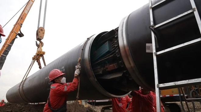 國家管網集團施工人員正在應用鞍鋼管線鋼製作的管道進行現場施工作業。