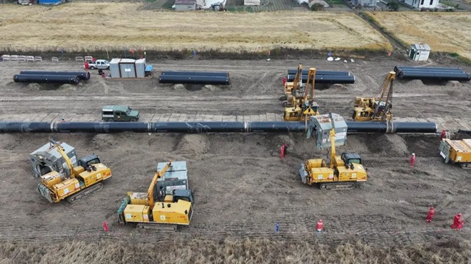 “一帶一路”示範項目——黑龍江黑河至上海天然氣管道工程(南通—甪直段)施工現場。