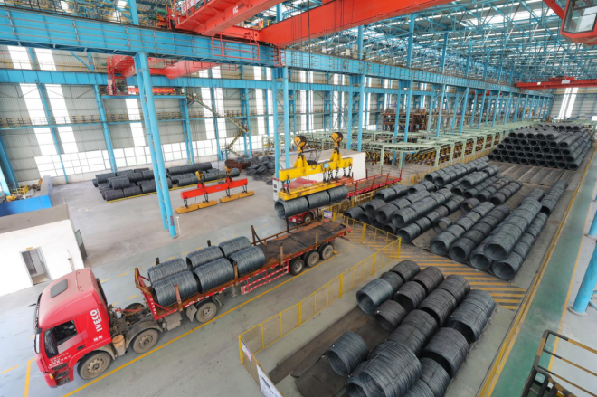 圖為柳鋼高速線材發貨現場。(蔣國華 攝)