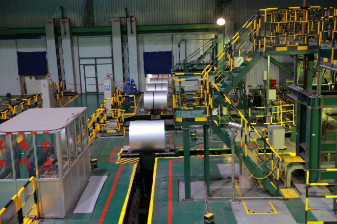 圖為酒鋼熱軋酸洗板鍍鋅鋁鎂聯合機組項目助推碳鋼薄板廠產品結構優化升級。
