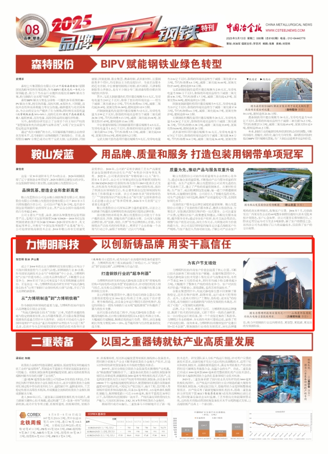 pinpai,buzhiyujishu,gengyuanyuxinren。libomingkejidepinpaijianshe,jiyuanyujishudechixuchuangxin,youyuanyuxiangmuyixiandediandijilei。congyitaitaiwendingyunxingdeshebei,daoyigegegongjiankenandegongchenggushi,libomingyizhuanyedejingshen、務實的作風和可靠的品質,贏得了用戶的高度信賴。麵向未來,力博明科技將繼續堅持“黨建引領+技術創新”,聚焦鋼鐵行業綠色發展需求,深化品牌建設,助力中國鋼鐵行業邁向更綠色、更智慧、更低碳、更高效的發展新階段。(鄒吉明 張冰 尹山青)
