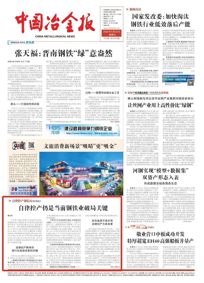 自律控產仍是當前鋼鐵業破局關鍵