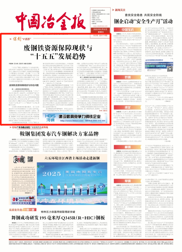 “十四五”期間,廢鋼鐵加工行業快速發展,回收利用產業鏈和加工配送體係逐步完善,綠色化、智能化水平有所提升,廢鋼鐵資源保障能力不斷提高,但仍麵臨一些問題。“十五五”期間,廢鋼鐵行業將充分發揮節能減排、綠色環保的特點,以創新為驅動,繼續朝著產業化、產品化、區域化、規模化的方向發展壯大,助力鋼鐵行業綠色高質量發展。