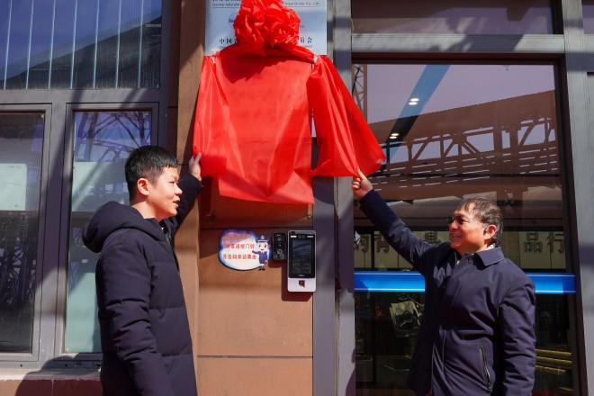 圖為朱榮教授與林滔董事長為“镔鋼二氧化碳校企聯合研究中心”揭牌。