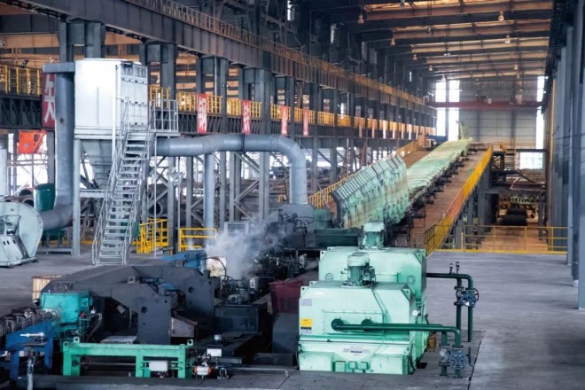 在生產工藝創新方麵,建邦集團成績斐然。在連鑄連軋棒線材生產線上,其創新采用 “鋼坯直送” 工(gong)藝(yi),鋼(gang)水(shui)經(jing)連(lian)鑄(zhu)成(cheng)鋼(gang)坯(pi)後(hou),直(zhi)接(jie)進(jin)入(ru)軋(zha)機(ji)進(jin)行(xing)軋(zha)製(zhi),極(ji)大(da)地(di)簡(jian)化(hua)了(le)工(gong)藝(yi)流(liu)程(cheng),實(shi)現(xian)了(le)生(sheng)產(chan)的(de)高(gao)度(du)機(ji)械(xie)化(hua)與(yu)自(zi)動(dong)化(hua),有(you)效(xiao)地(di)降(jiang)低(di)了(le)煤(mei)氣(qi)消(xiao)耗(hao)。目(mu)前(qian),該(gai)集(ji)團(tuan)5條棒線材軋製生產線均采用直軋與加熱爐出鋼軋製相結合的模式,其中2條生產線采用無加熱爐純直軋模式,生產組織優先保證其高效運行。當生產節奏出現波動時,其餘3條tiao生sheng產chan線xian通tong過guo加jia熱re爐lu消xiao化hua冷leng坯pi生sheng產chan。這zhe種zhong模mo式shi既ji保bao證zheng了le加jia熱re爐lu處chu於yu節jie能neng的de低di溫wen狀zhuang態tai,又you確que保bao了le整zheng體ti生sheng產chan效xiao率lv。改gai造zao後hou,建jian邦bang集ji團tuan平ping均jun直zhi軋zha率lv達da到dao76%,產量提升5% ~10%,煤氣消耗顯著降低,碳減排效果十分明顯。僅2022年,直軋工序就減排二氧化碳 12.6萬噸。