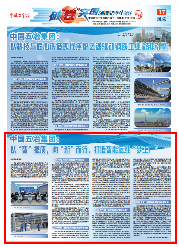 “我們將加大冶金及工業智慧運維‘新賽道’的布局力度,以示範產線為依托,深度融入大數據、人工智能、5G、物聯網等手段,加快推動自身技術迭代升級和產業化應用,為鋼鐵企業提供覆蓋全流程、貫穿全生命周期的智慧運維綜合解決方案。”全國人大代表、中國五冶集團黨委書記、董事長朱永繁在2025年nian全quan國guo兩liang會hui期qi間jian說shuo道dao。未wei來lai,中zhong國guo五wu冶ye集ji團tuan將jiang繼ji續xu以yi硬ying核he科ke技ji為wei筆bi,以yi創chuang新xin生sheng態tai為wei墨mo,以yi雲yun端duan智zhi慧hui守shou護hu大da地di上shang的de鋼gang鐵tie洪hong流liu,用yong數shu據ju脈mai搏bo激ji活huo傳chuan統tong產chan線xian的de青qing春chun基ji因yin。