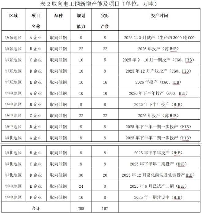 據不完全統計,2025年上半年,我國電工鋼在建及計劃投產項目為27項;其中,取向電工鋼15項,年產能共計167萬噸;無取向電工鋼12項,年產能共計501萬噸。