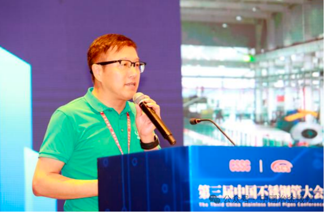 圖為鋼協不鏽鋼分會專家委員會專家李天寶做題為《中國不鏽鋼管行業發展現狀及未來發展趨勢》的主旨報告