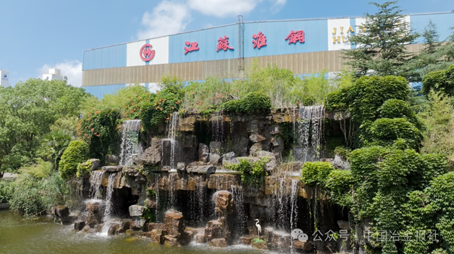 《中國冶金報》記者走進淮鋼,但見道路兩旁的梧桐樹亭亭如蓋,陽光灑下,樹影斑駁;流水從開滿鮮花的假山傾瀉而下,形成道道清涼瀑布,很難將公園與一家年產數百萬噸特鋼的現代化鋼鐵企業區別開來。