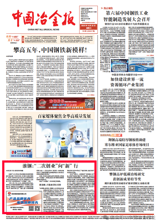 在沙鋼集團成立50周年之際,淮鋼也迎來了55周年。日前,《中國冶金報》記者來到淮鋼,發現通過“二次創業”,淮鋼已完成從普鋼到優鋼再到特鋼的華麗轉身。